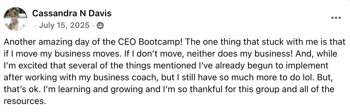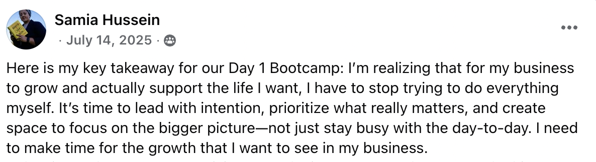 The CEO Bootcamp is designed to help you step out of that cycle and build a business that supports you—not the other way around.