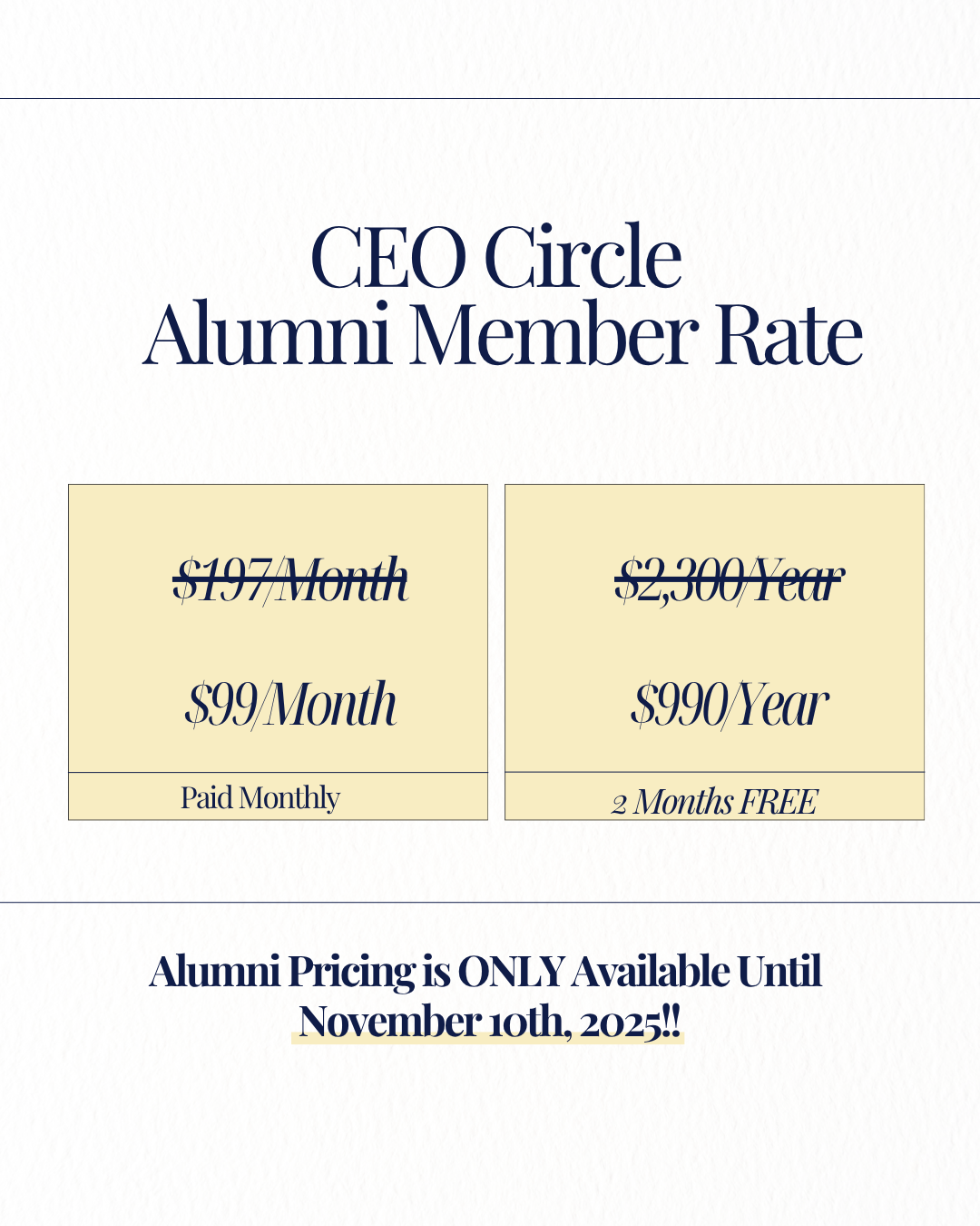 If you’re considering joining the CEO Circle in the future, remember: when we reopen in January 2026, the price will be $197/month — so if you're able, we highly recommend locking in the founding member rate now. -